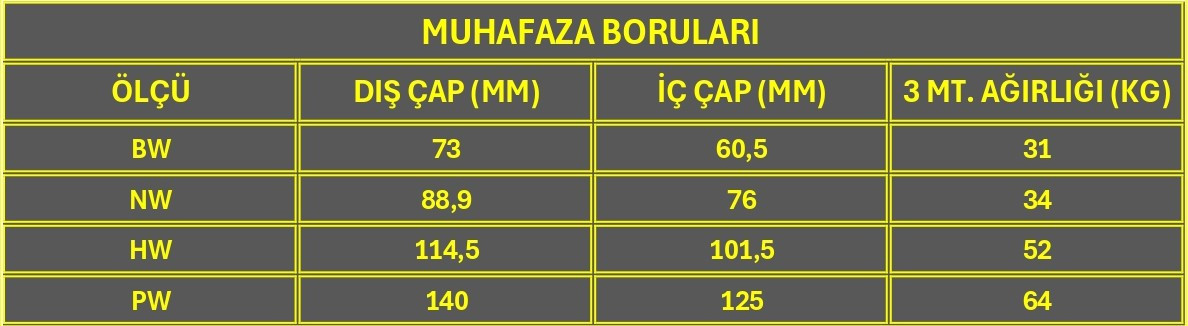 Multi Plus Makina “W” serisi muhafaza borularının bir ucu dişi, diğer ucu erkek dişli olup, manşon