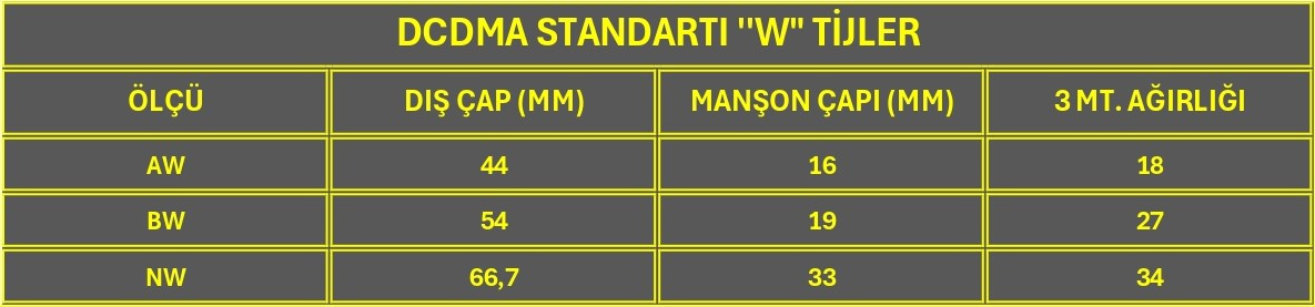 daha büyüktür. Bu sebepten “W” serisi tijler kuyu içinde daha dengelidir. Gerekli