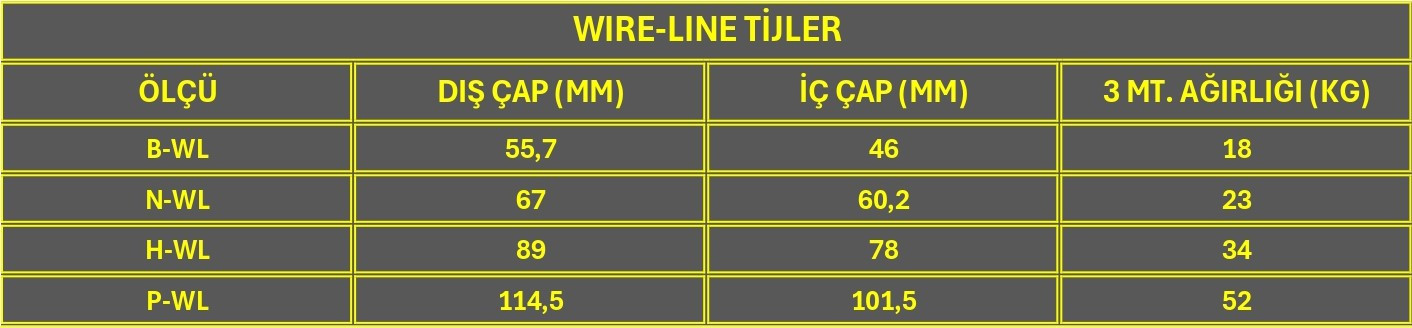 Wireline tijleri, karot tüpünü kuyuya indirip çıkarmak ve aynı zamanda kuyu içinde çeşitli ölçümler yapmak için kullanılır. Karotlu sondaj sırasında, kuyu içine indirilen tijler üzerine yerleştirilmiş sensörler ve ölçüm cihazları, yer altındaki formasyonun özelliklerini belirlemek, kaya türünü analiz etmek ve diğer önemli verileri toplamak için kullanılır.